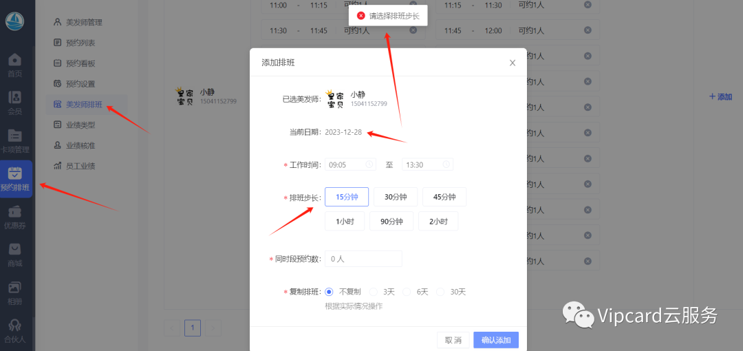 3、优化美业技师排版 选择15分钟 不能保存BUG